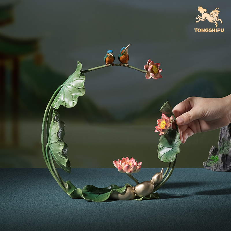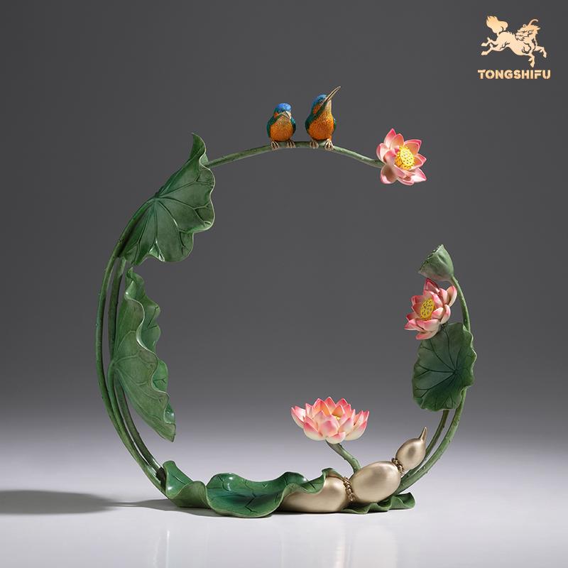 铜师傅《夏日荷韵》客厅桌面铜翠鸟荷花摆件 家居装饰工艺品