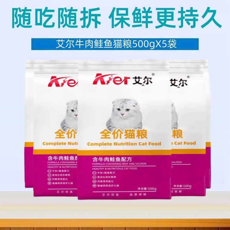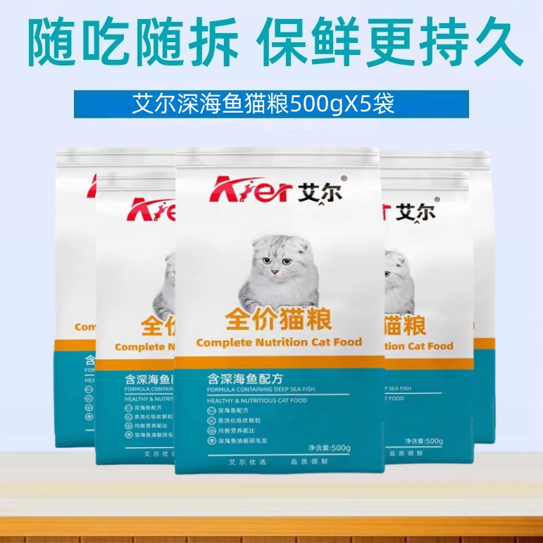 艾尔生命之源猫粮2.5kg 祛毛球配方500g*5包金枪鱼味全价猫粮5斤