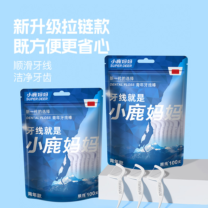 【每日领券】小鹿妈妈青年款牙线棒100支/袋*3袋(送随身盒)