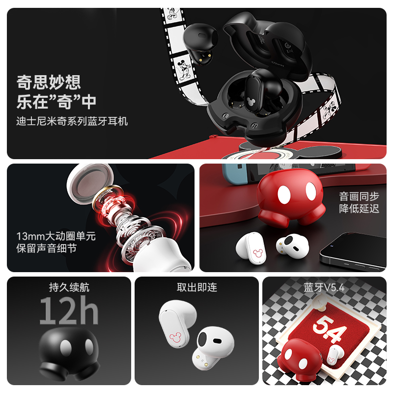 迪士尼 (Disney) 米奇联名蓝牙耳机无线半入耳式高颜卡通送礼D01
