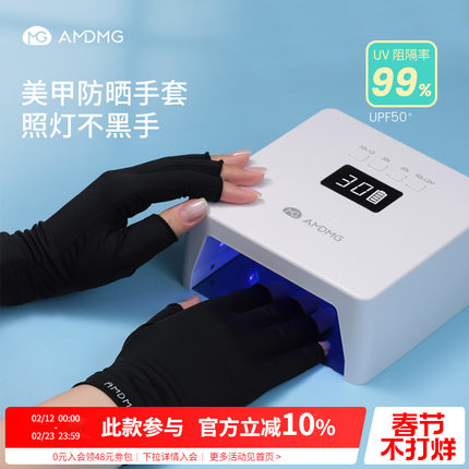 做指甲照灯防烤黑紫外线高弹透气冰丝露指防晒手套美甲店专用工具