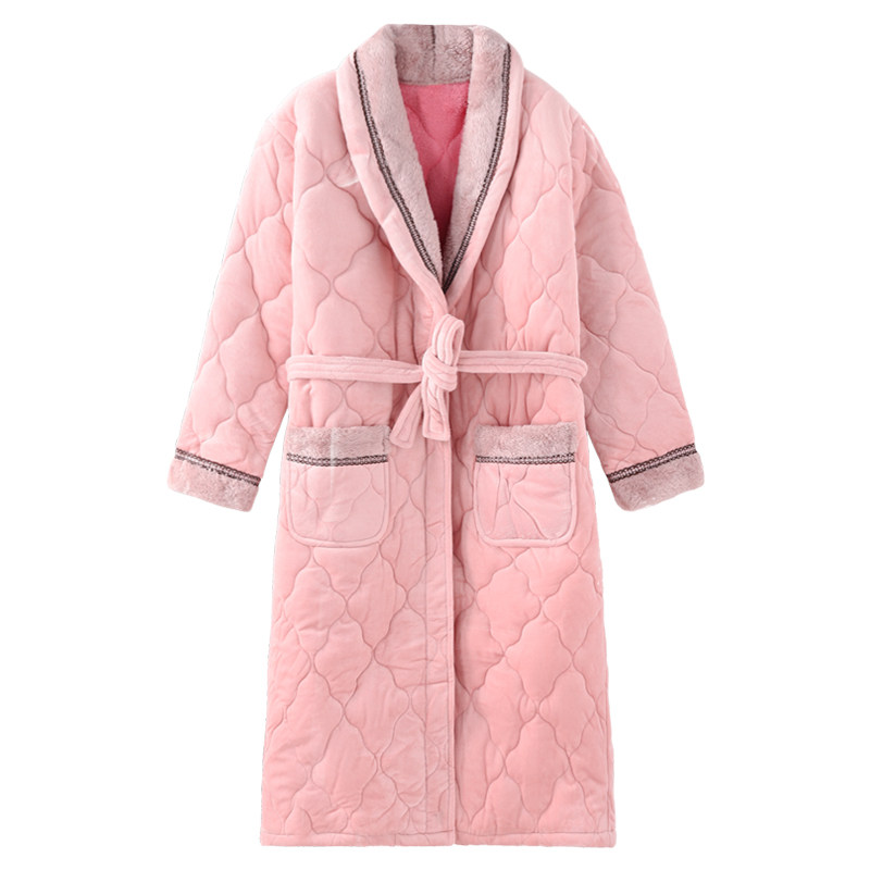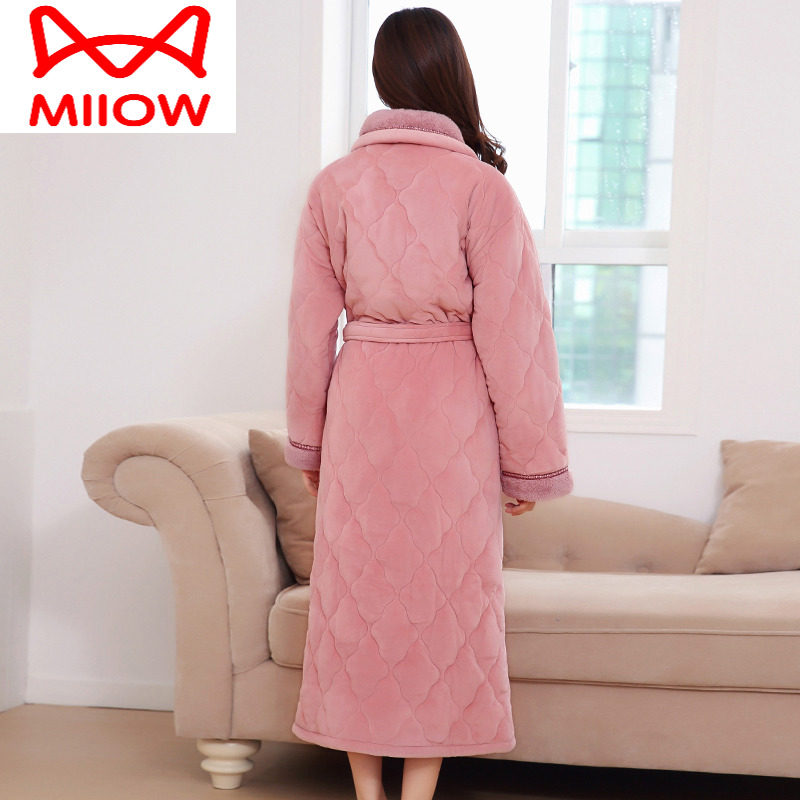 猫人睡袍女珊瑚绒三层夹棉加厚加绒长款浴袍睡衣法兰绒秋冬款
