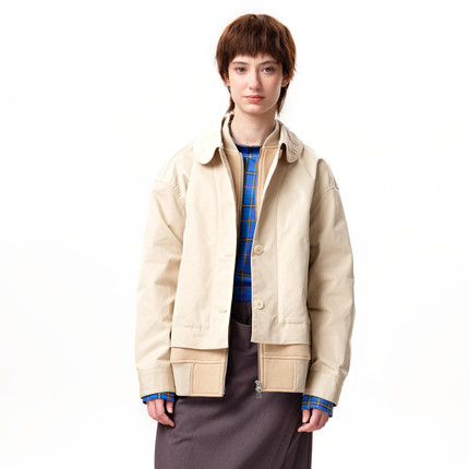 【商场同款】MOVEUP幻走2025冬季新款假两件翻领口袋短款外套女