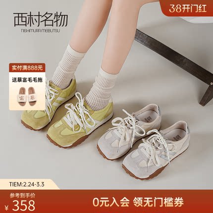 西村名物2025秋季新款女士芒果头复古平底透气百搭复古运动德训鞋
