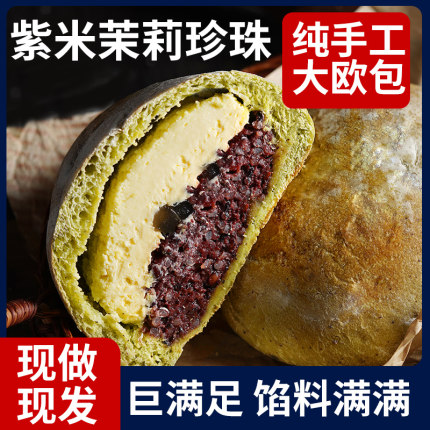 【现做现发】紫米茉莉珍珠奶酪欧包纯手工手作面包健身零食品早餐