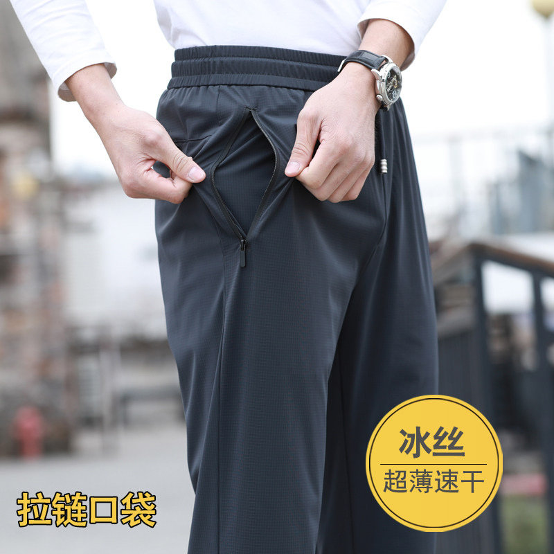 冰丝速干夏季薄款男士抗皱运动裤