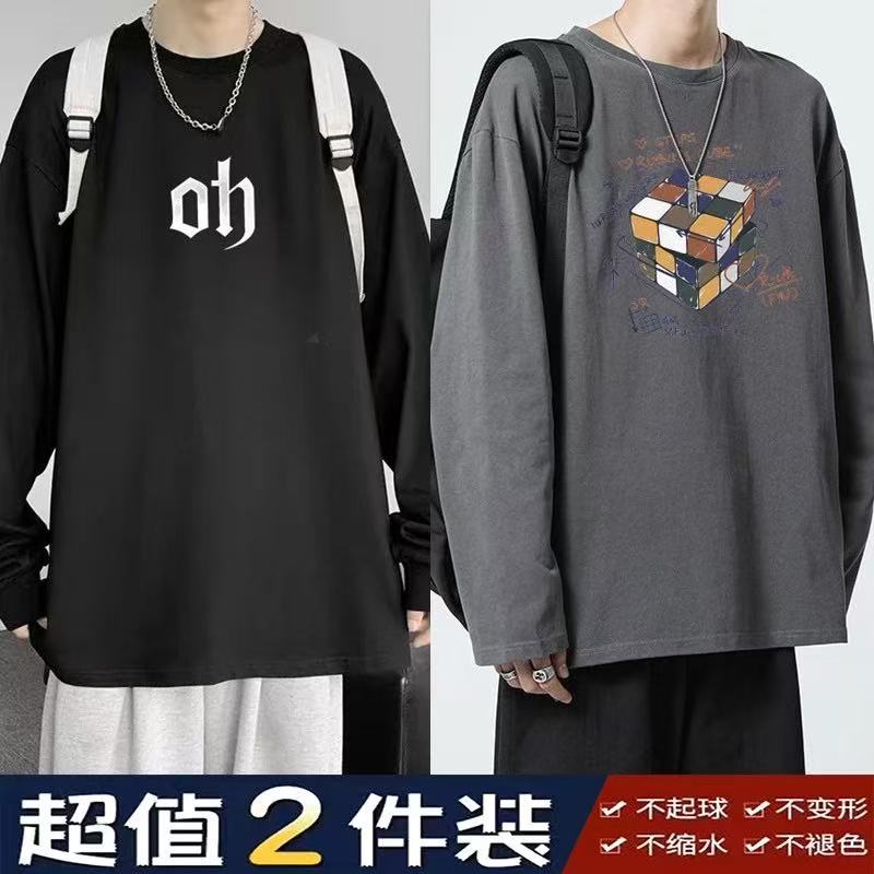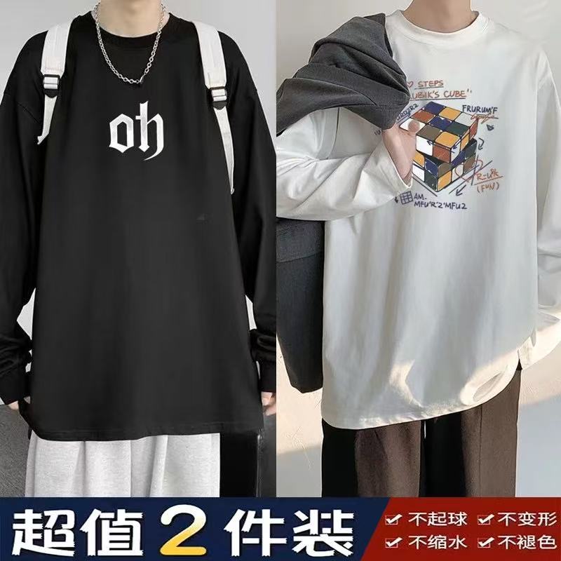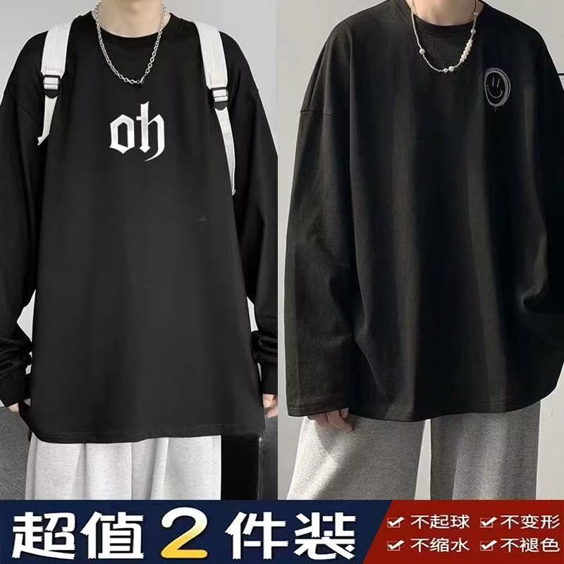 2025秋冬学生休闲百搭简约宽松大码打底衫胖子上衣薄款T恤