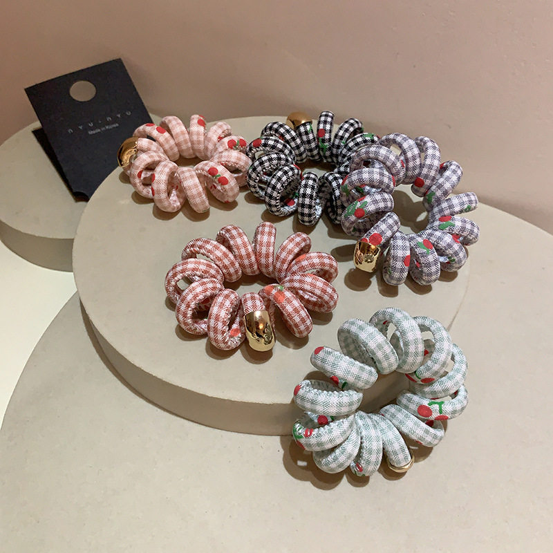 甜美可爱樱桃水果电话线发圈高弹力少女心马尾扎头绳韩国百搭发饰