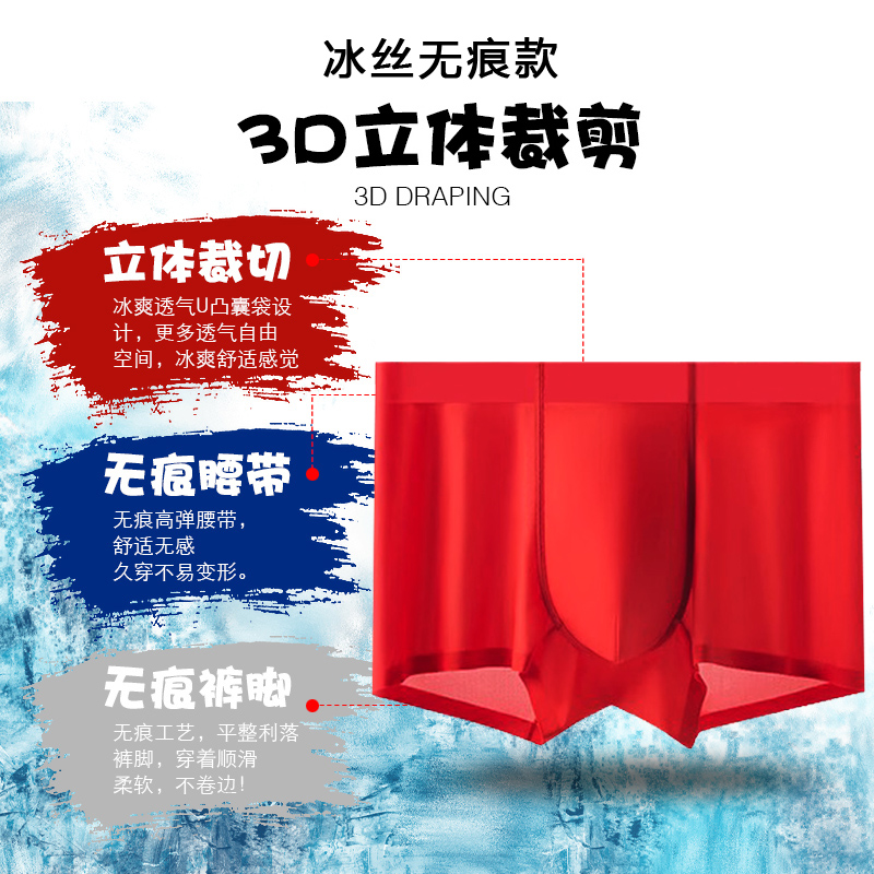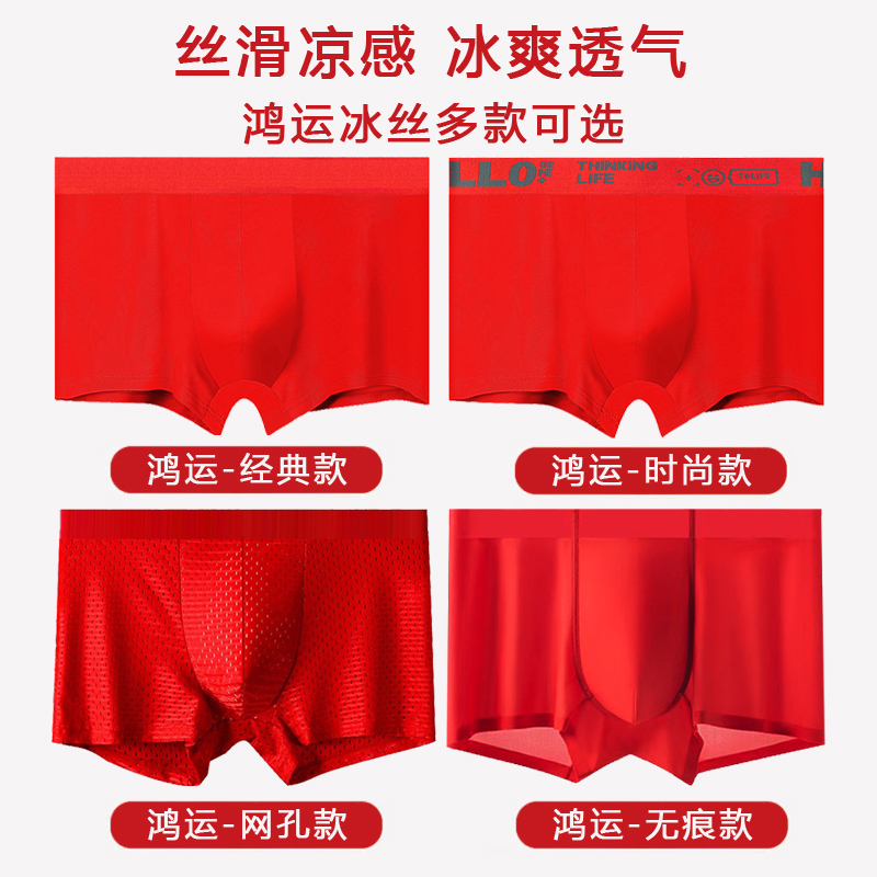 轻薄丝滑冰丝内裤男款红色短裤大码抗菌平角裤头本命年鸿运四角裤