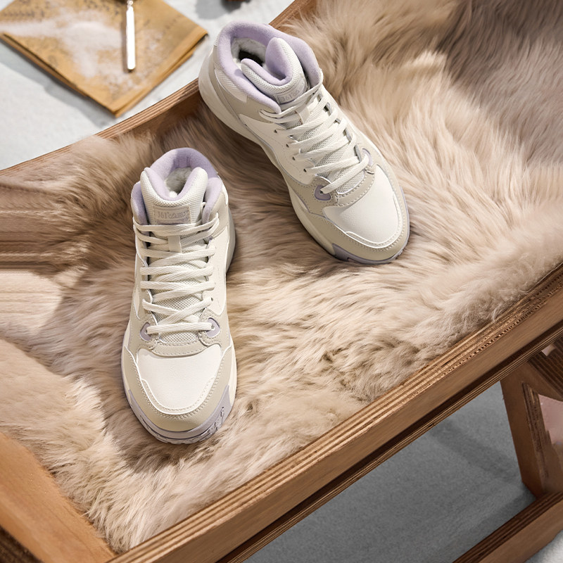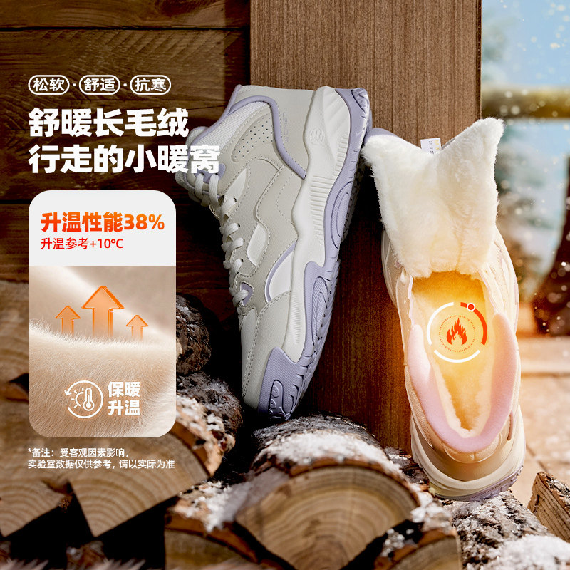 361高帮女鞋冬季运动鞋女款加绒保暖大棉鞋皮面防水休闲板鞋女士