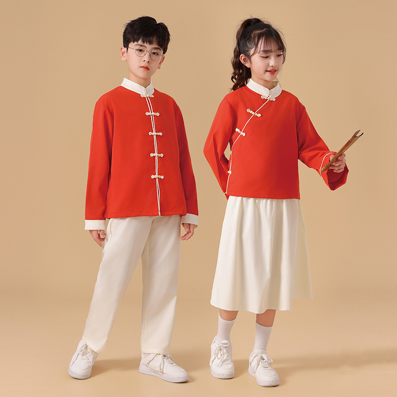 新款国学汉服开笔礼民国风中国风三字经演出服小学生运动会班服
