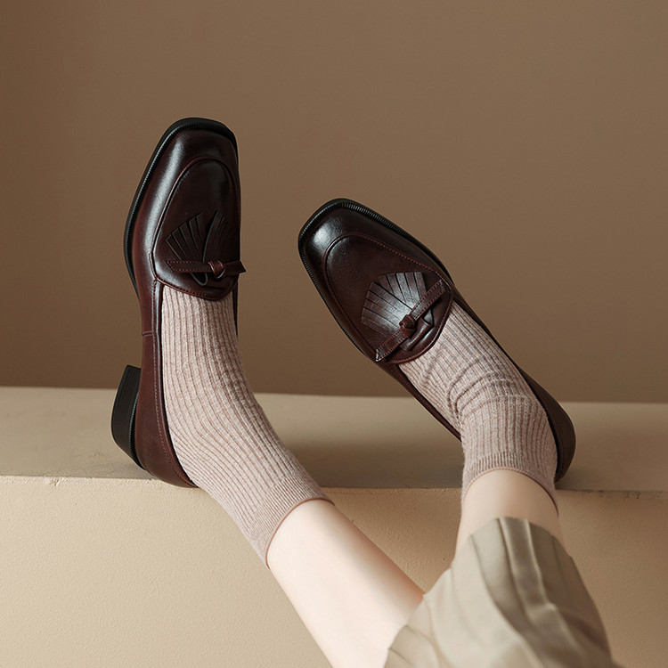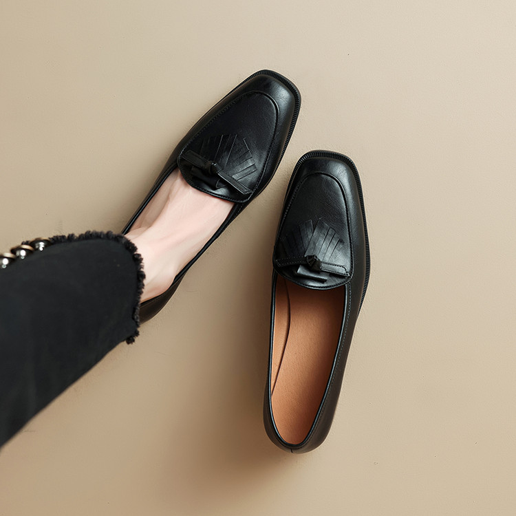高定版牛皮粗跟乐福鞋女英伦风平底小皮鞋秋冬软底方头加绒单鞋