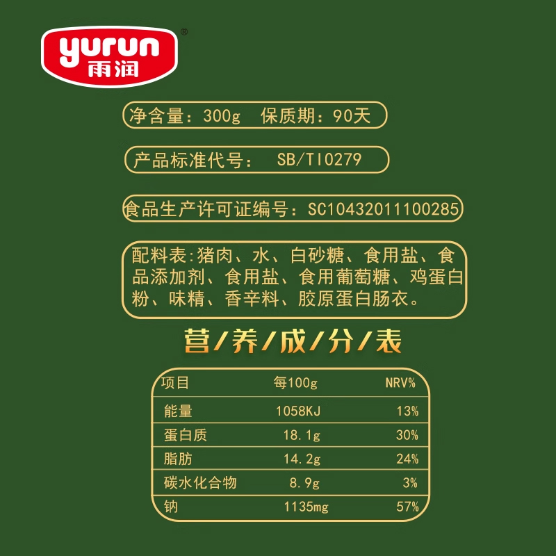 雨润300g台式烤肠台湾风味