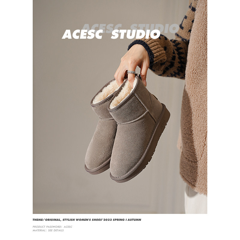 【男女同款】牛皮短筒雪地靴女新款冬加绒加厚保暖靴子棉鞋雪地鞋