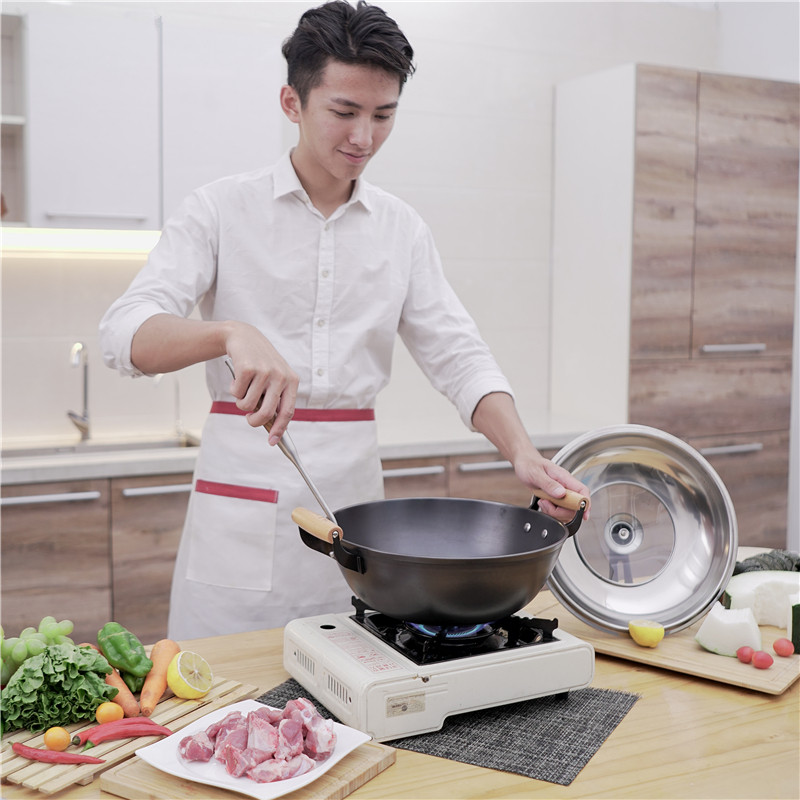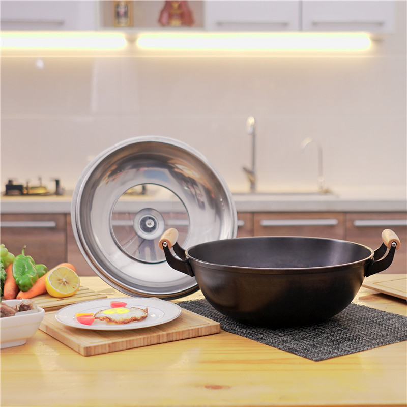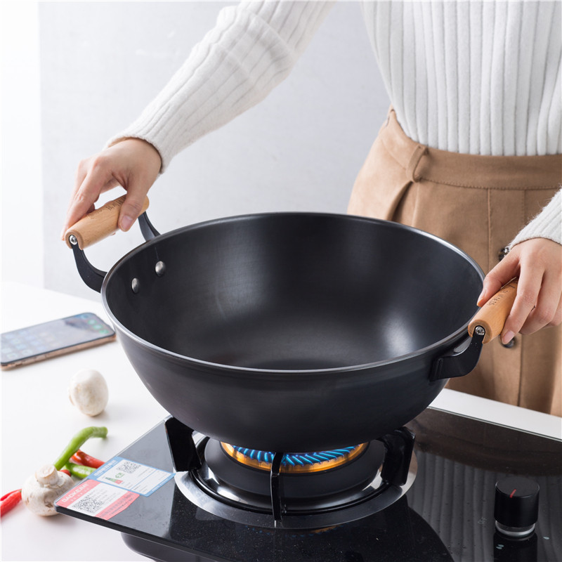 铁人铁锅炒锅双耳加深大铁锅家用无涂层生铸铁锅电磁炉燃气灶炒锅