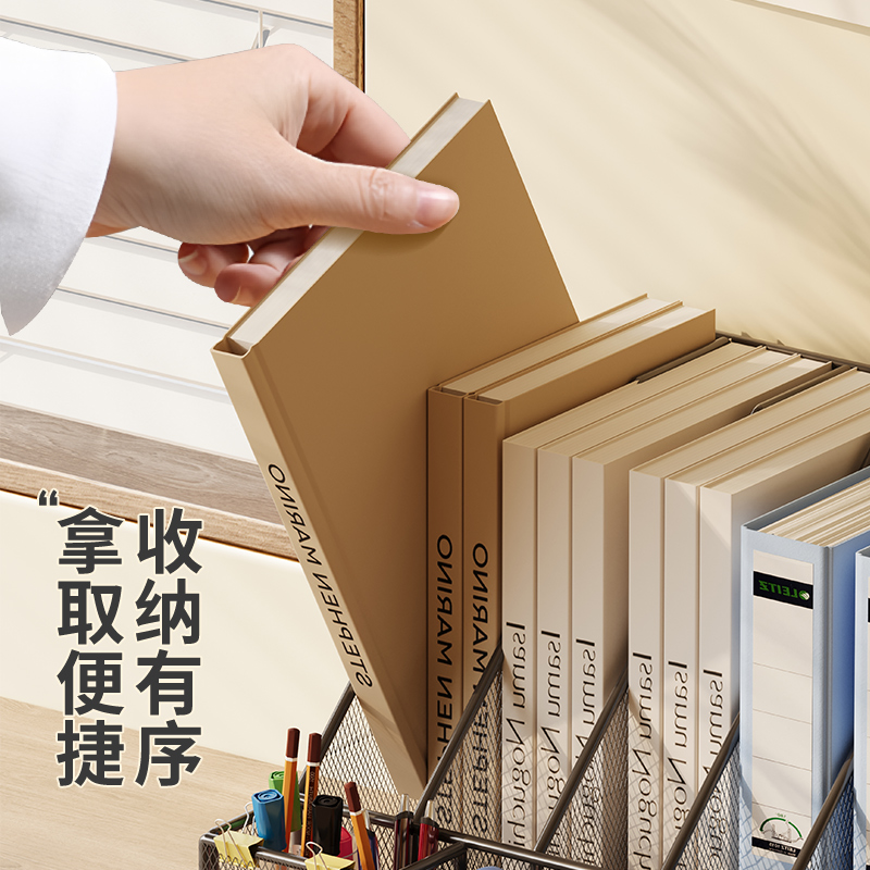 桌面收纳置物架办公桌文件收纳盒办公用品书架书立架多层金属文件框文件架大容量文件夹档案架A4纸资料整理架