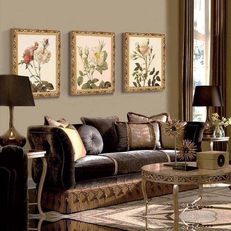 简欧客厅装饰画三联花画卉壁画欧DYK式沙发背画室墙餐厅景挂画卧