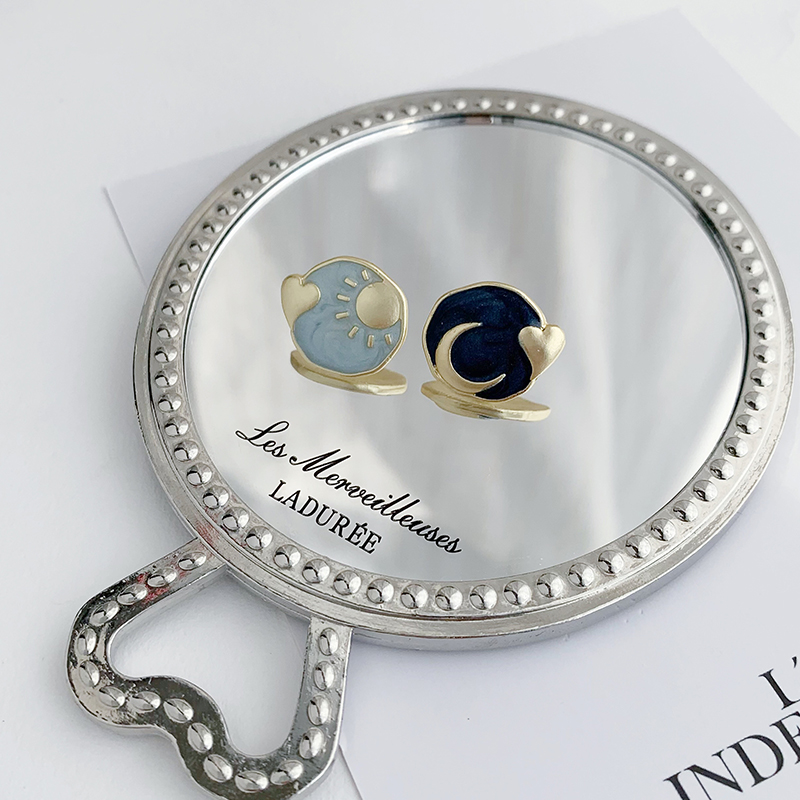 S925不对称星月耳钉2021年新款爱心耳饰设计感小众耳夹复古无耳洞
