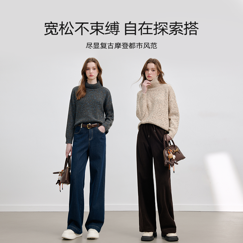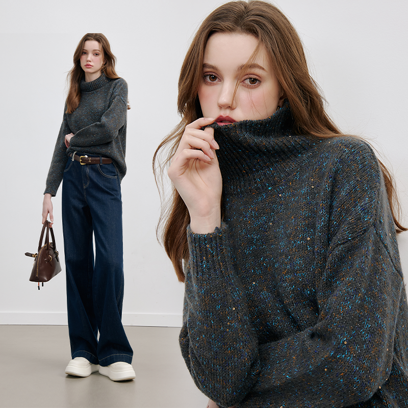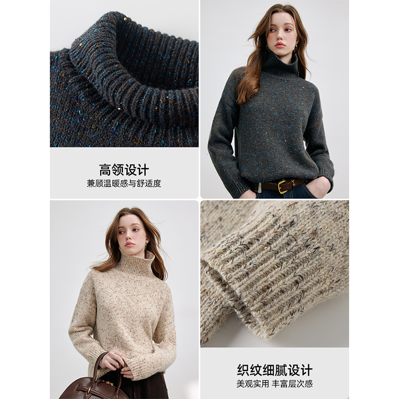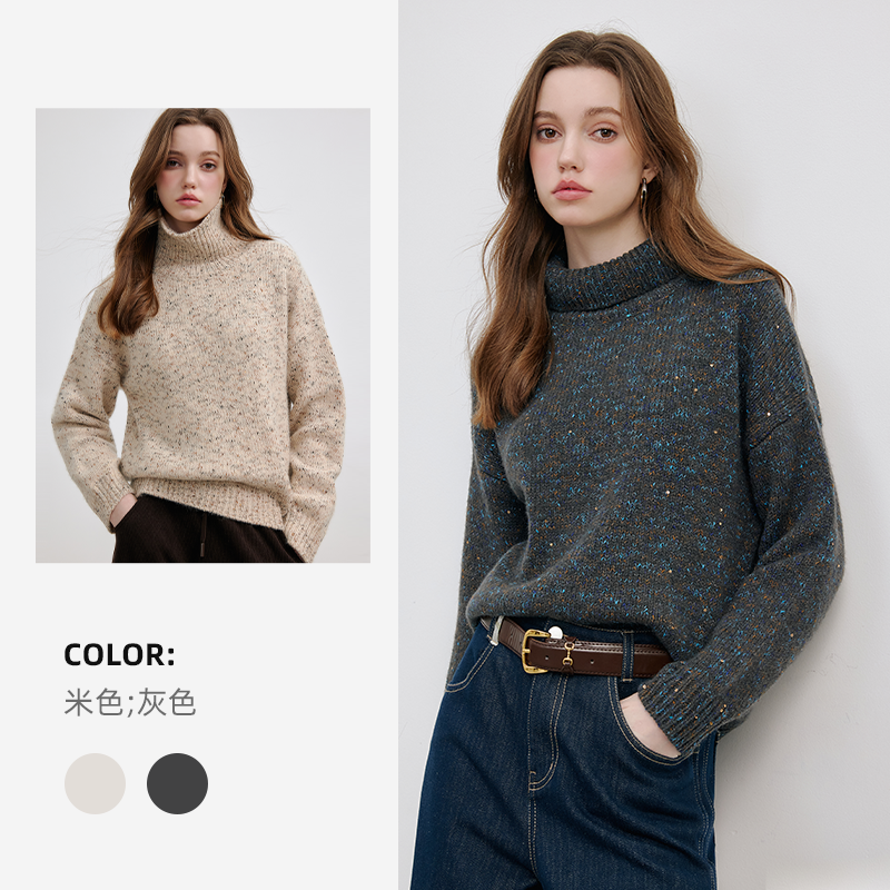 KBNE羊毛灰色半高领打底衫抓绒衣气质针织衫秋冬新款上衣毛衣女装