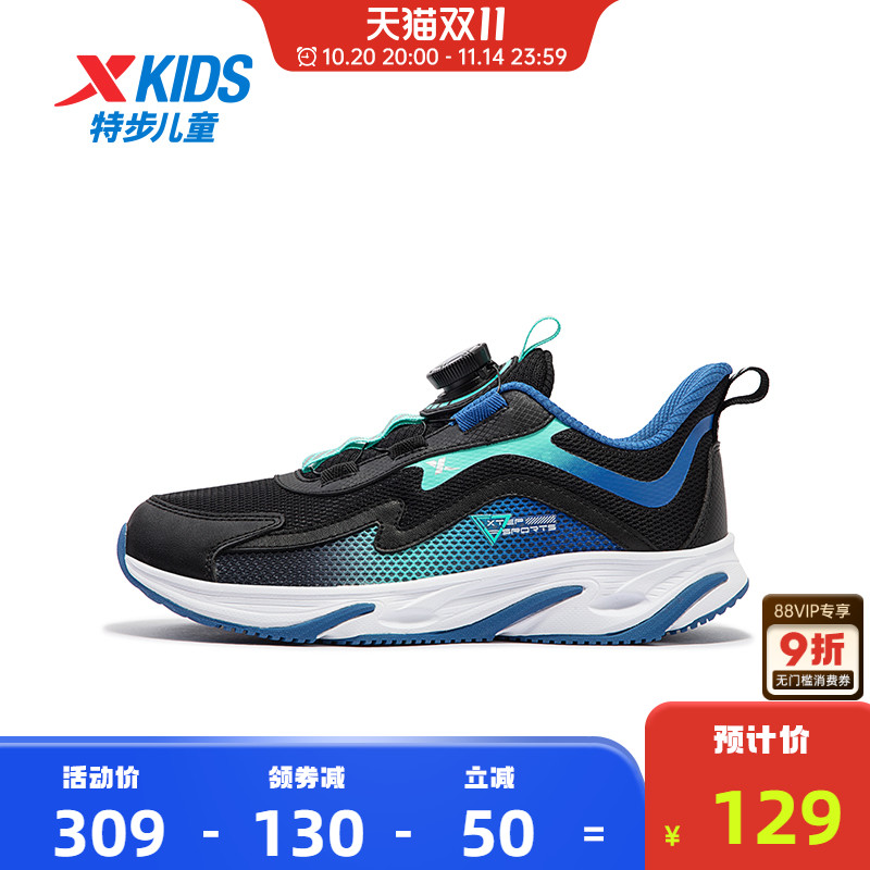 瞬影特步儿童2025春秋款男童鞋运动鞋旋钮扣中大童鞋子休闲跑步鞋