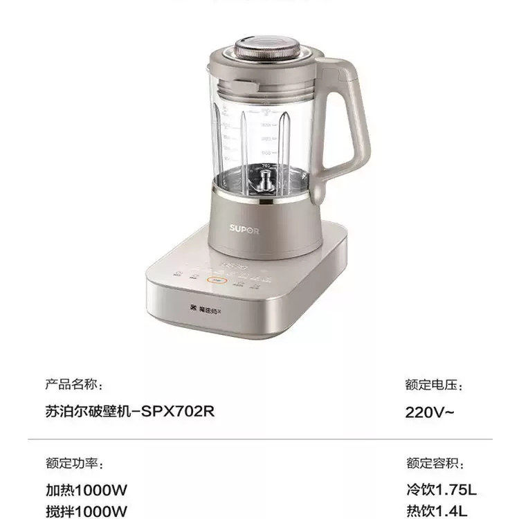苏泊尔破壁机家用全自动无刷电机低音可拆洗多功能料理机SPX702R