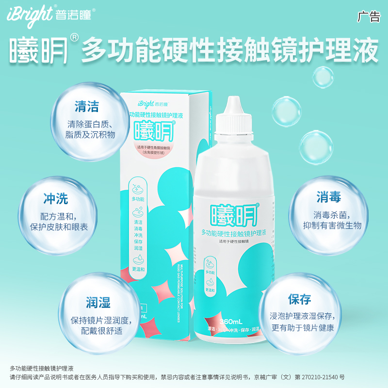 普诺瞳曦明硬性眼镜护理液ok镜rgp角膜塑形硬镜冲洗润滑360ml*4瓶