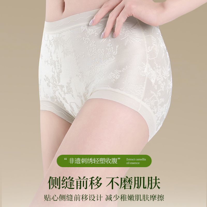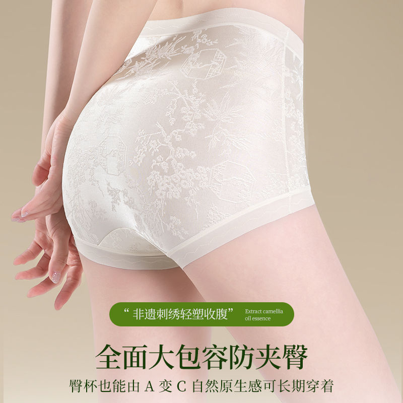 收腹提臀裤桑蚕丝薄款高腰无痕新中式小肚子束腰女修身内裤夏