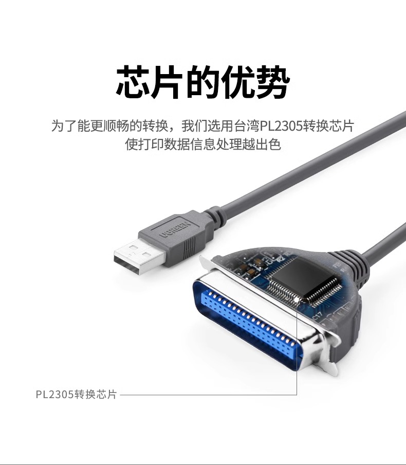 绿联usb转并口打印机线db36老式电脑25针串口lpt连接数据线转换线