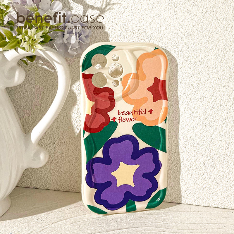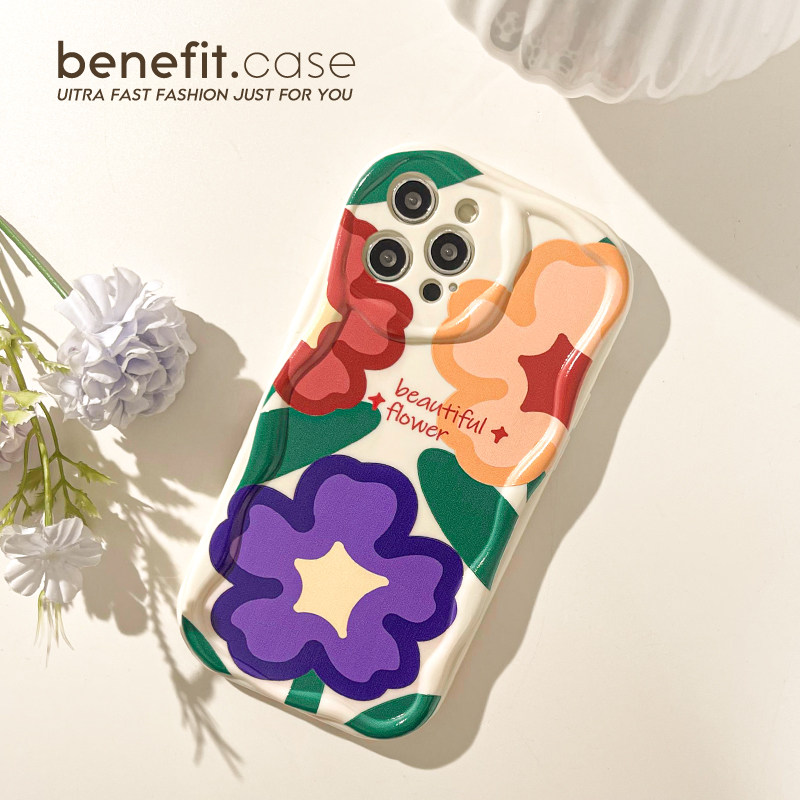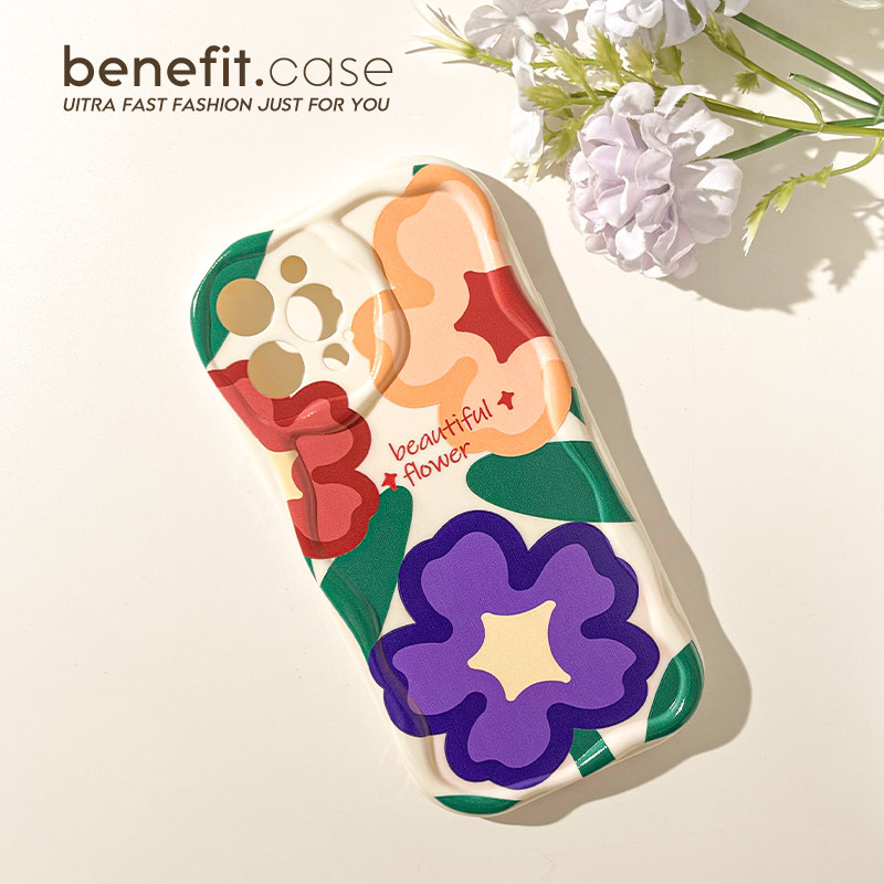 benefit多巴胺彩色油画花朵17pro16适用于iphone15promax苹果15PRO手机壳13新款14套12小众11全包xs硅胶xr防