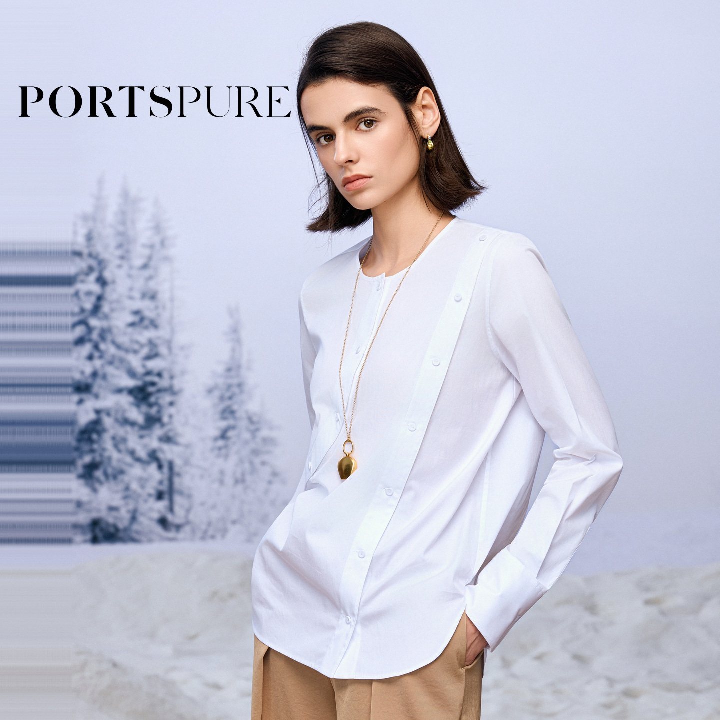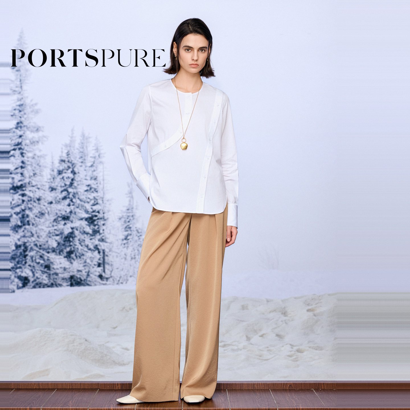 商场同款 宝姿PORTSPURE女装2025秋冬新品经典松弛曲线白色衬衫