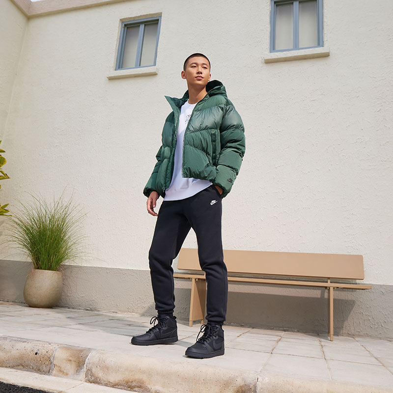 耐克男子冬新款卫衣卫裤套装加绒宽松收口针织长裤FN3809 FN3887