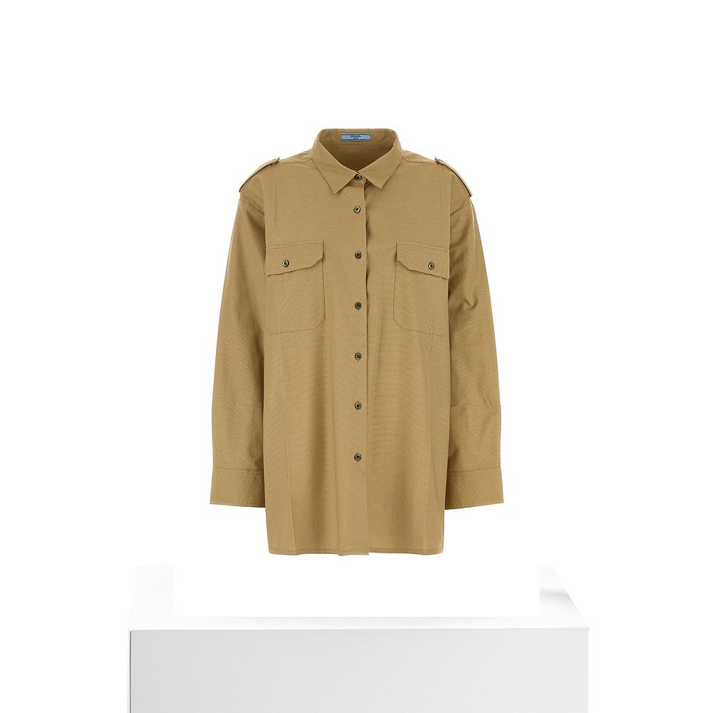 1h可退 潮奢 Prada 普拉达 女士 浅褐色棉质宽松款衬衫 P496HSOOO