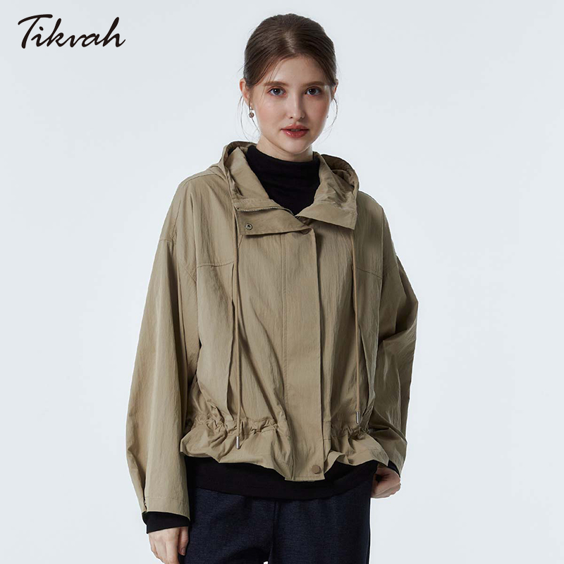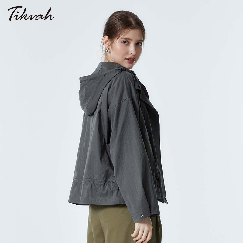 TIKVAH原创设计女连帽短外套宽松休闲夹克气质小个子时尚简约韩版