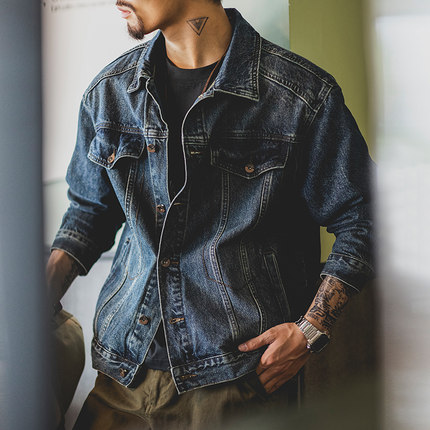 美式复古水洗蓝色牛仔外套