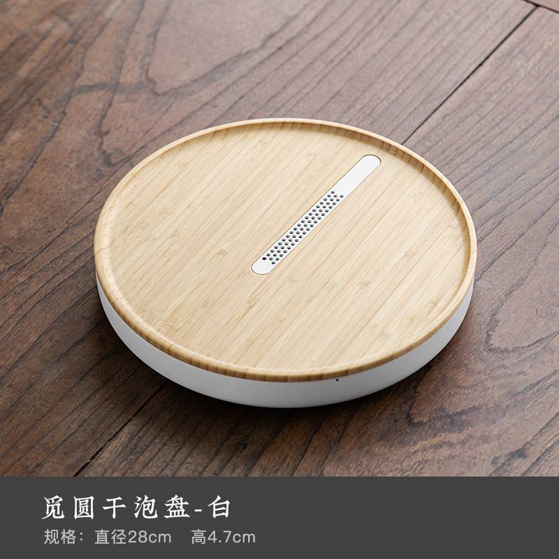 简约圆形茶盘不锈钢托盘轻便家用竹制面板小型茶海茶台沥水干泡盘