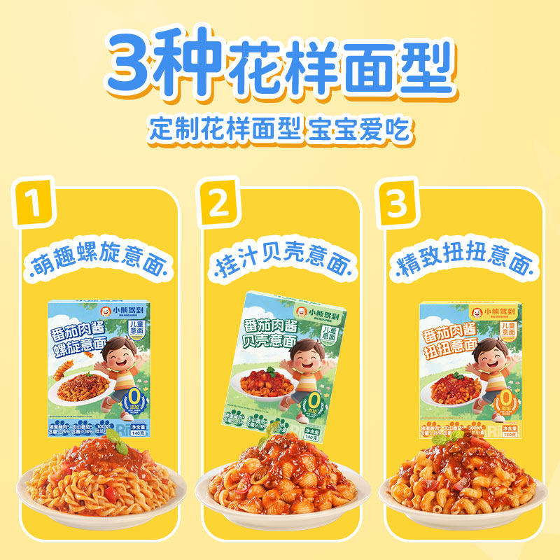 【宝宝爱吃】小熊驾到意面儿童早餐番茄肉酱意大利面螺旋速食意粉