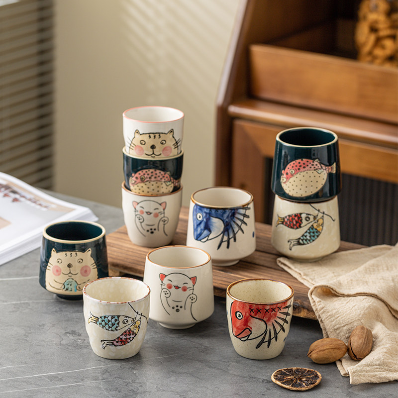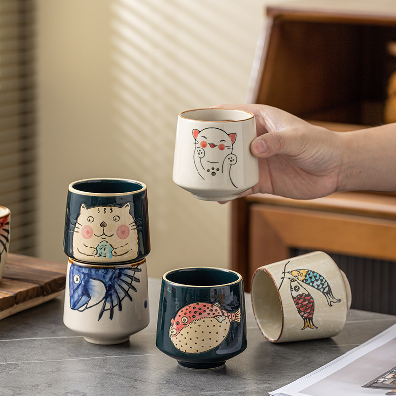日式茶杯和风陶瓷水杯汤吞杯早餐杯子手绘随手杯酒杯釉下彩家用小