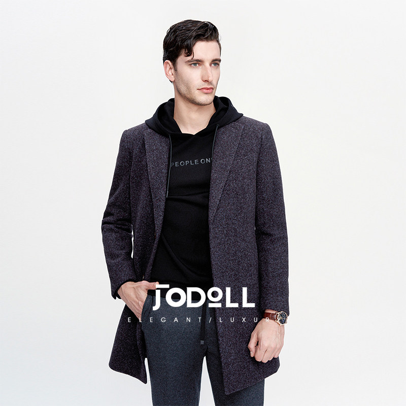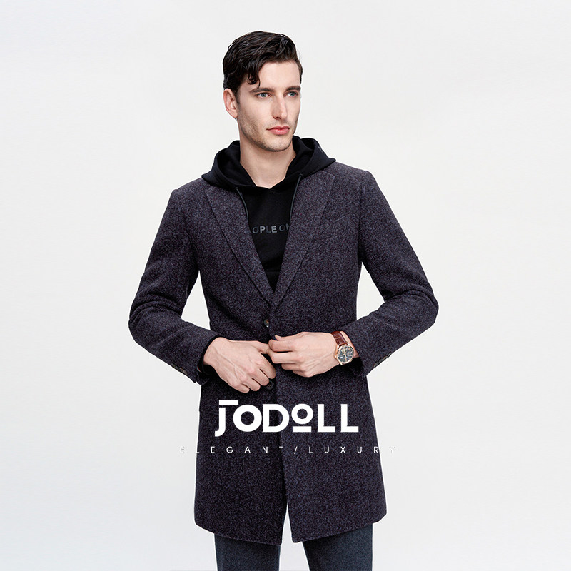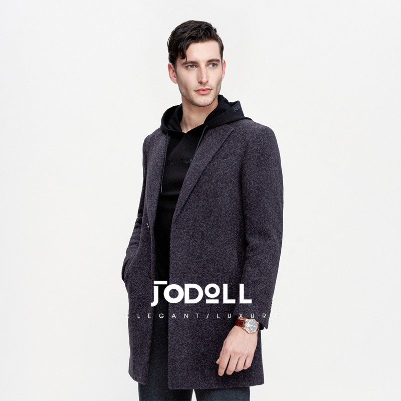 JODOLL乔顿冬季保暖羊毛大衣男士潮流休闲中长款西装领毛呢外套