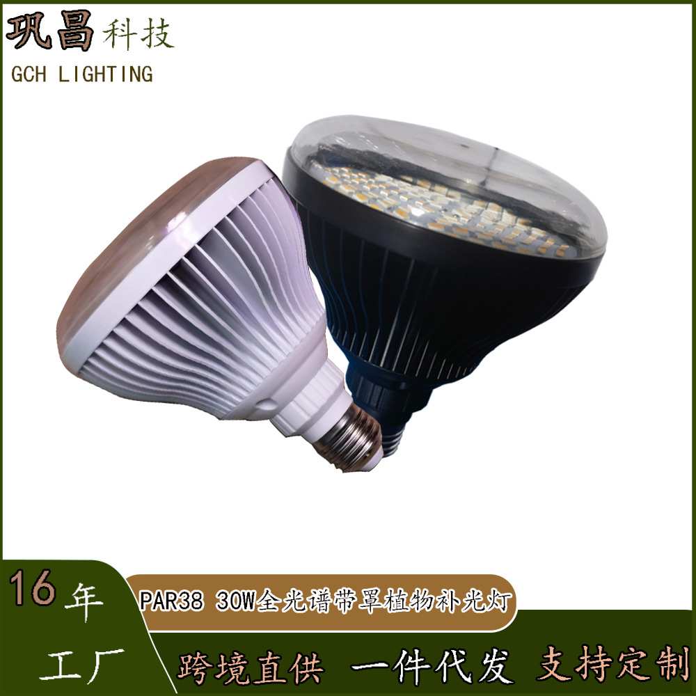 PAR38防蚊虫带罩全铝30W植物全光谱生长补光灯室内花卉绿植补光灯