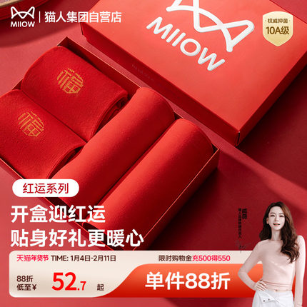 猫人25新款女士三角裤红品礼盒红色内裤袜子男士本命年结婚平角裤