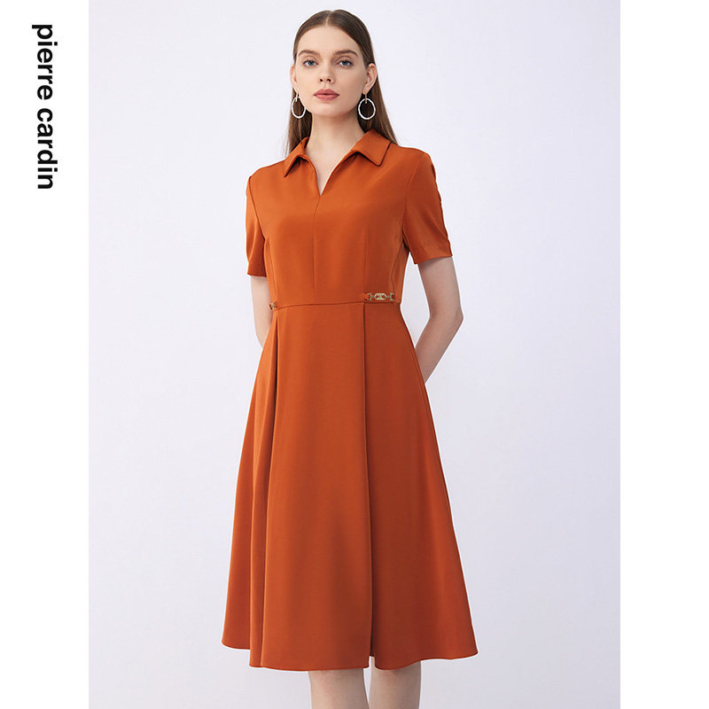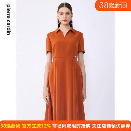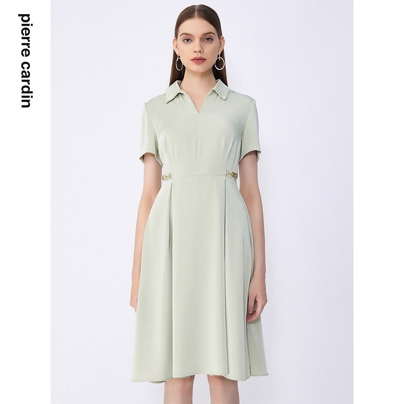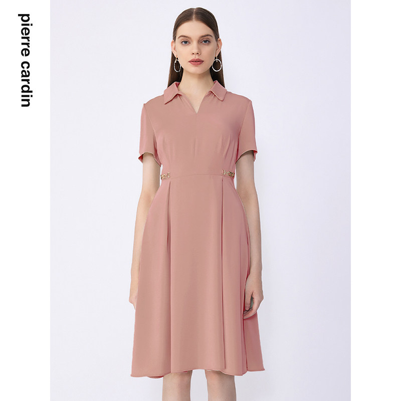 商场同款皮尔卡丹女装夏季新款通勤淑女修身双色连衣裙