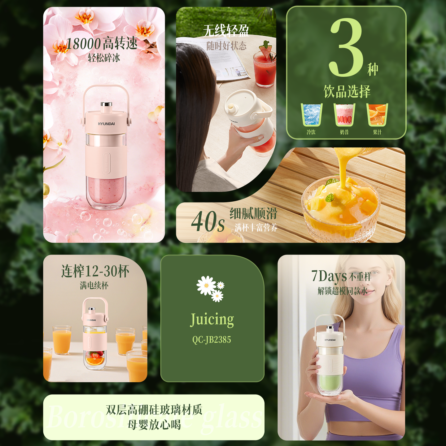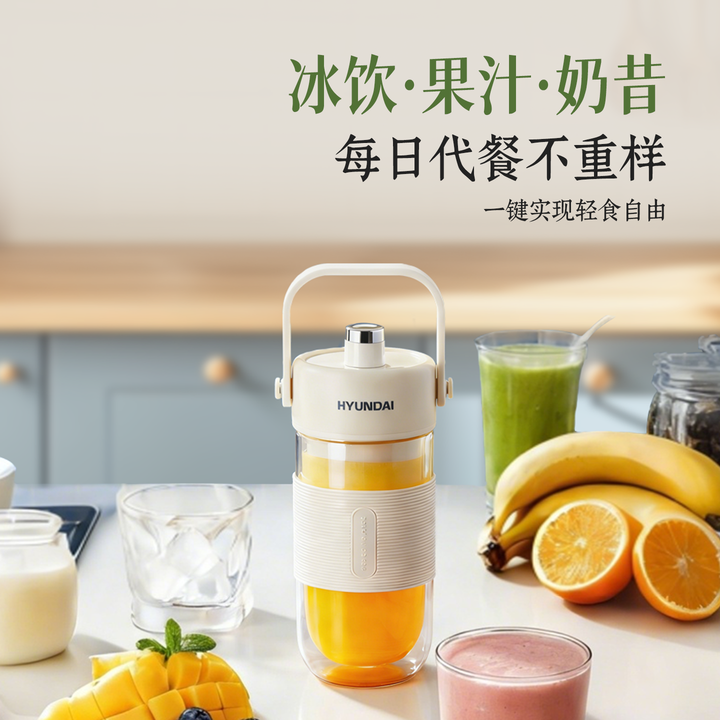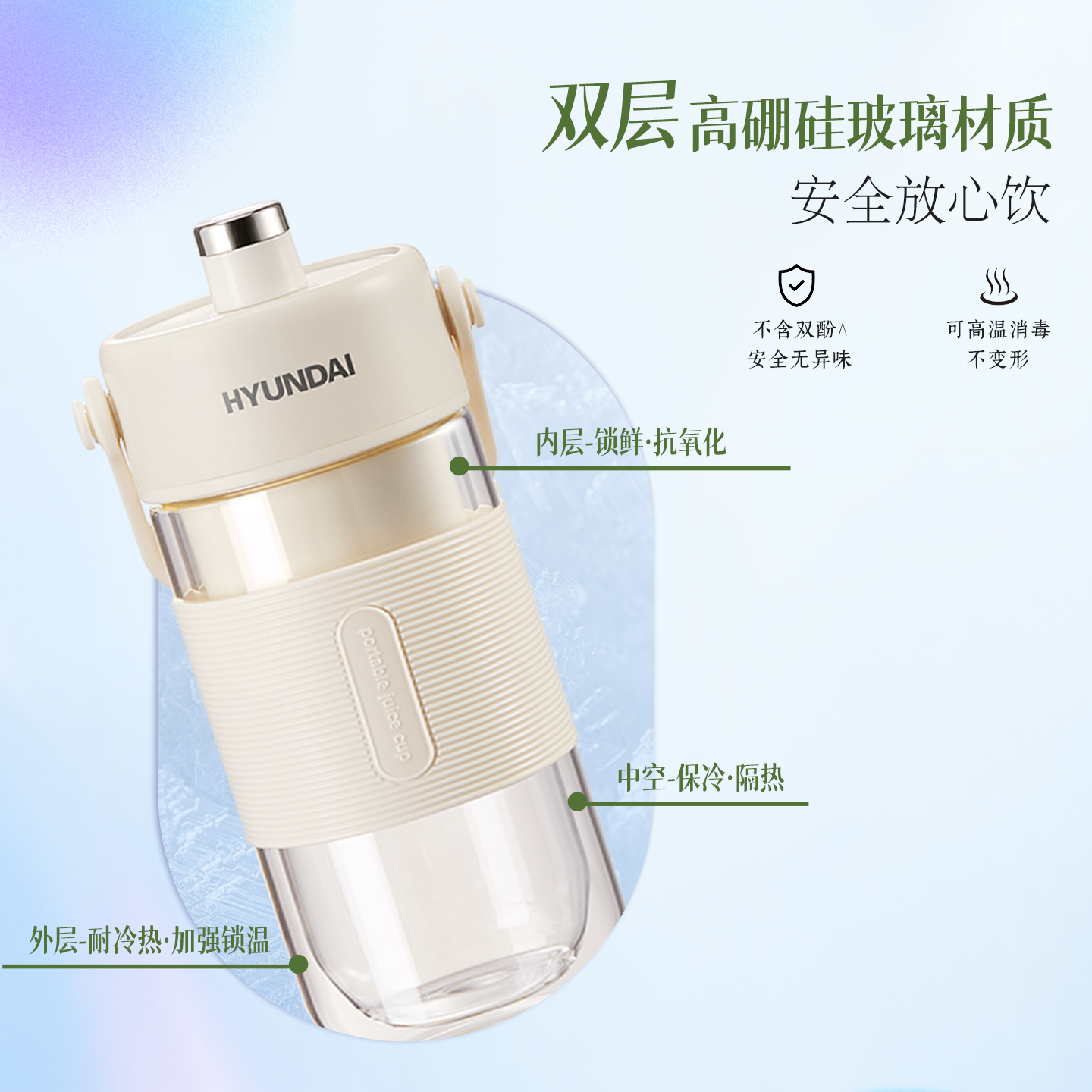 HYUNDAI榨汁机小型便携式水果蔬汁杯无线家用玻璃可碎冰2025新款