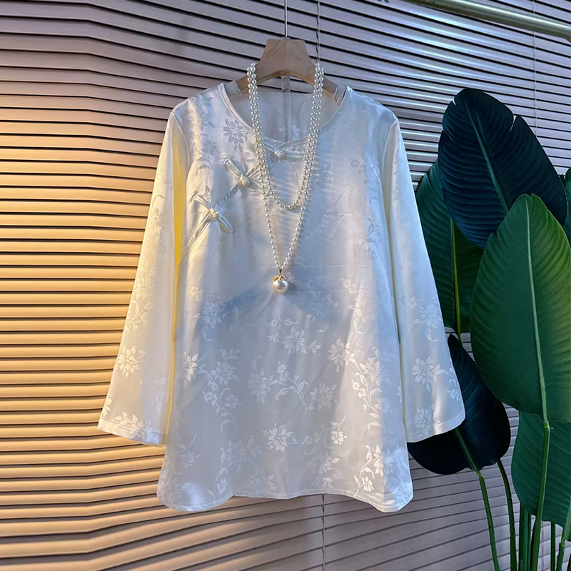 胖MM加肥圆领盘扣暗新中式上衣大码女装法式小众设计冬季百搭小衫