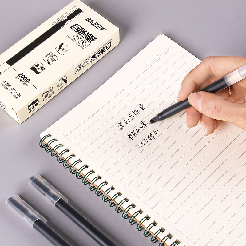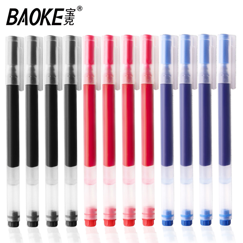 宝克3808巨能写大容量中性笔学生用黑水笔作业神器一体式黑色签字笔子弹头0.5大学考试用笔一次性水性中性笔