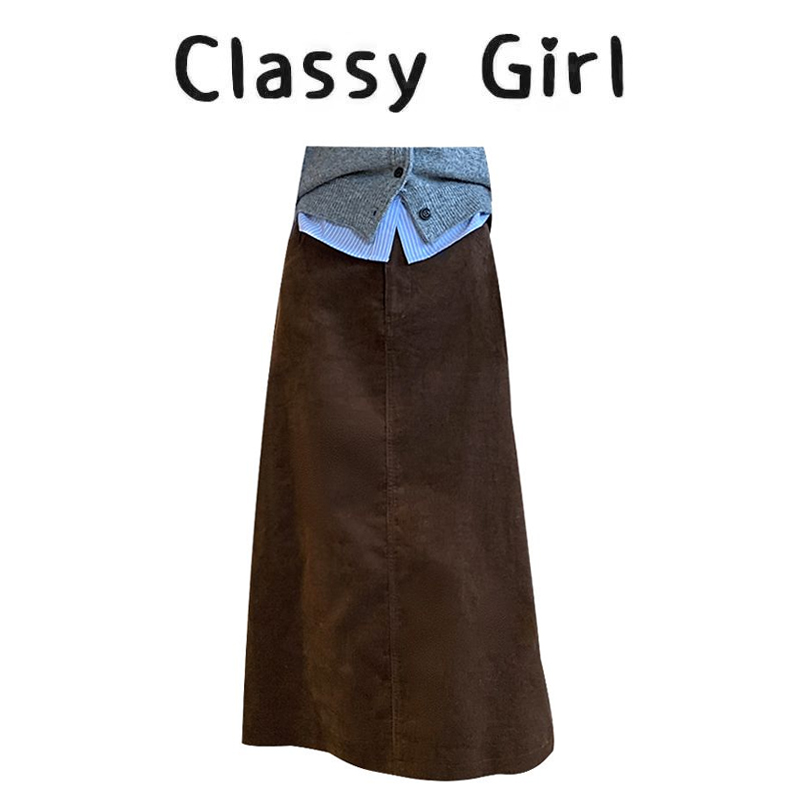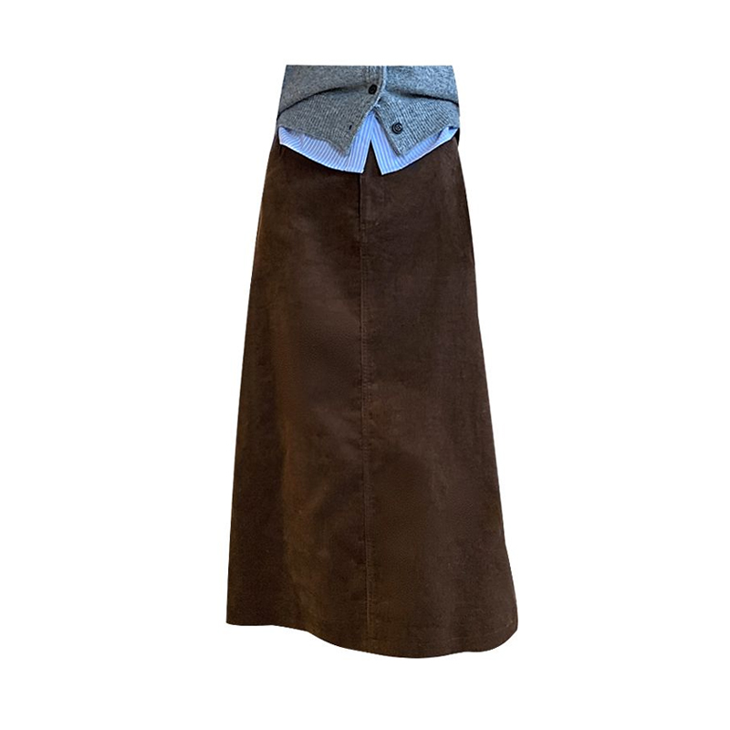 半身裙秋女2025新款韩系高智不露腿穿搭灯芯绒咖色版型超好长裙