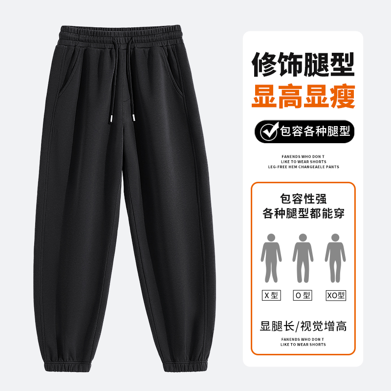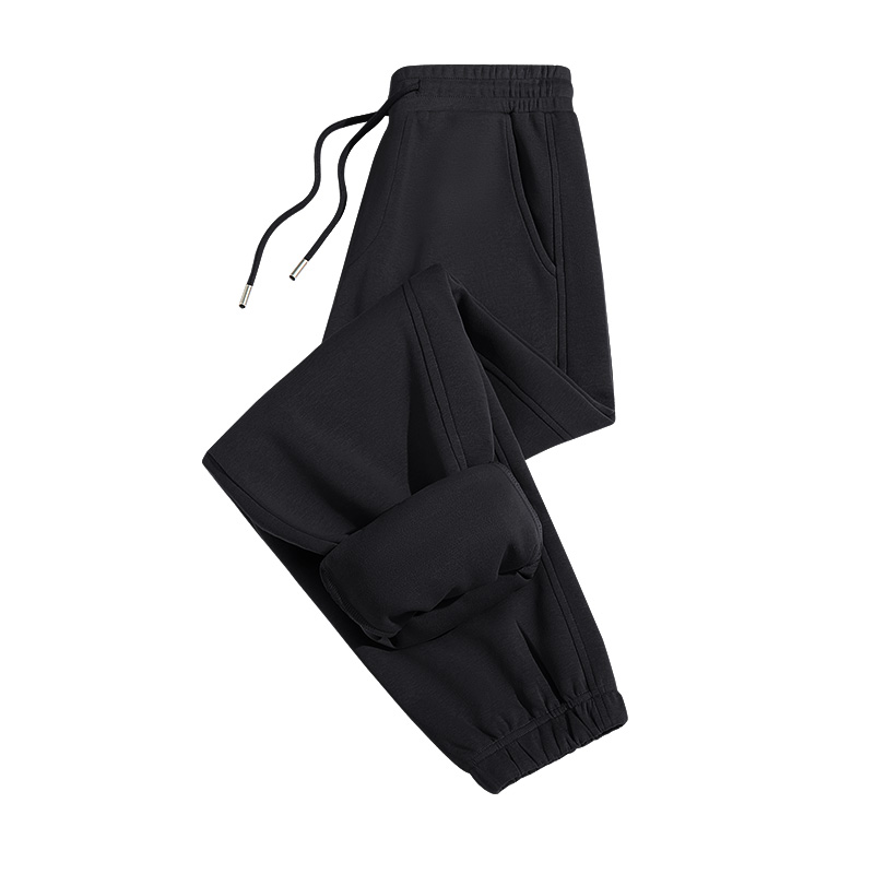 GV真维斯黑色运动裤男加绒裤子男款秋冬季宽松大码男生束脚卫裤C