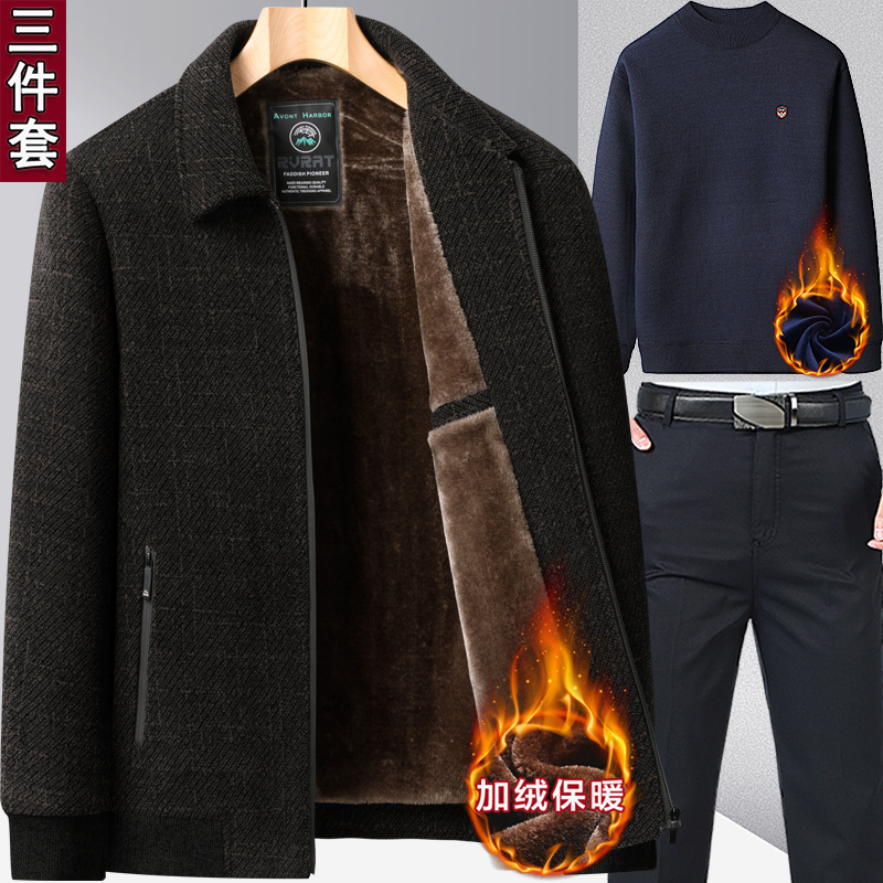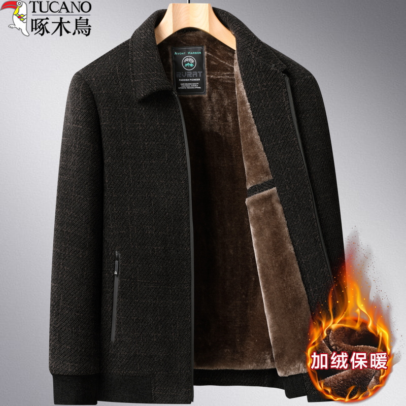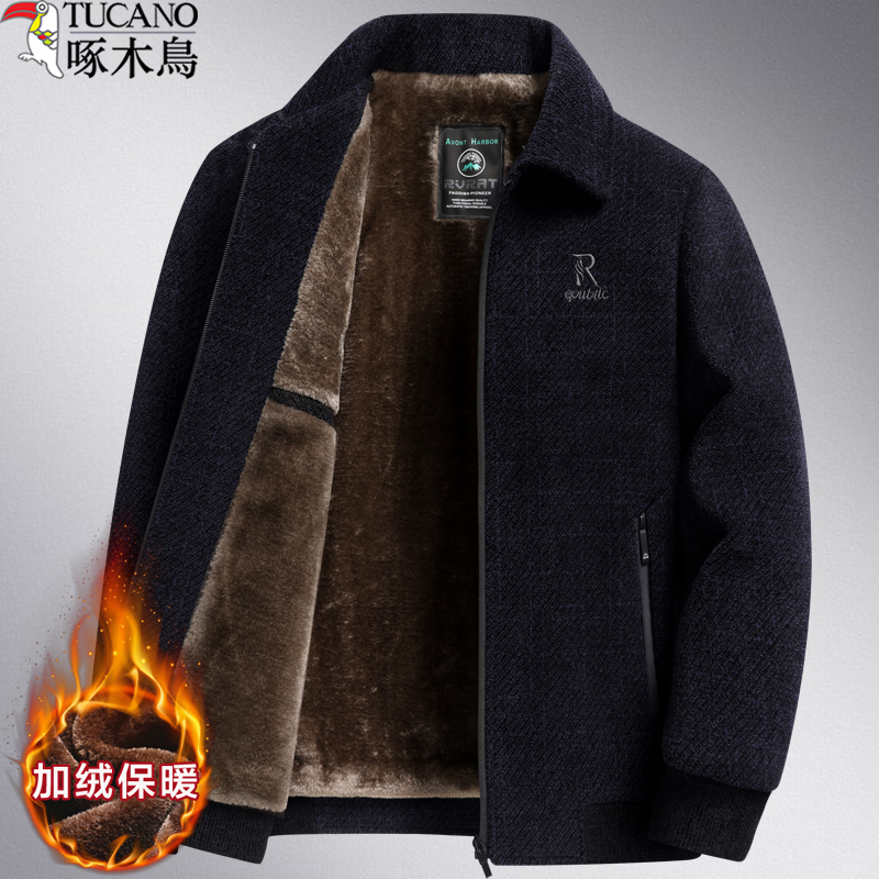 啄木鸟中年男士外套夹克衫加绒加厚款秋冬季中老年人棉衣服爸爸装