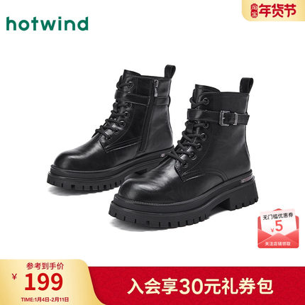 热风厚底马丁靴女款2025年冬季新款增高黑色短靴小个子靴子女鞋