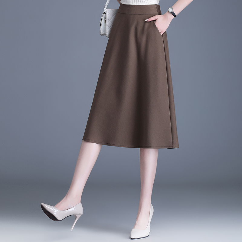 半身裙女春秋2025新款简约通勤a字裙中长款大码显瘦高腰休闲伞裙