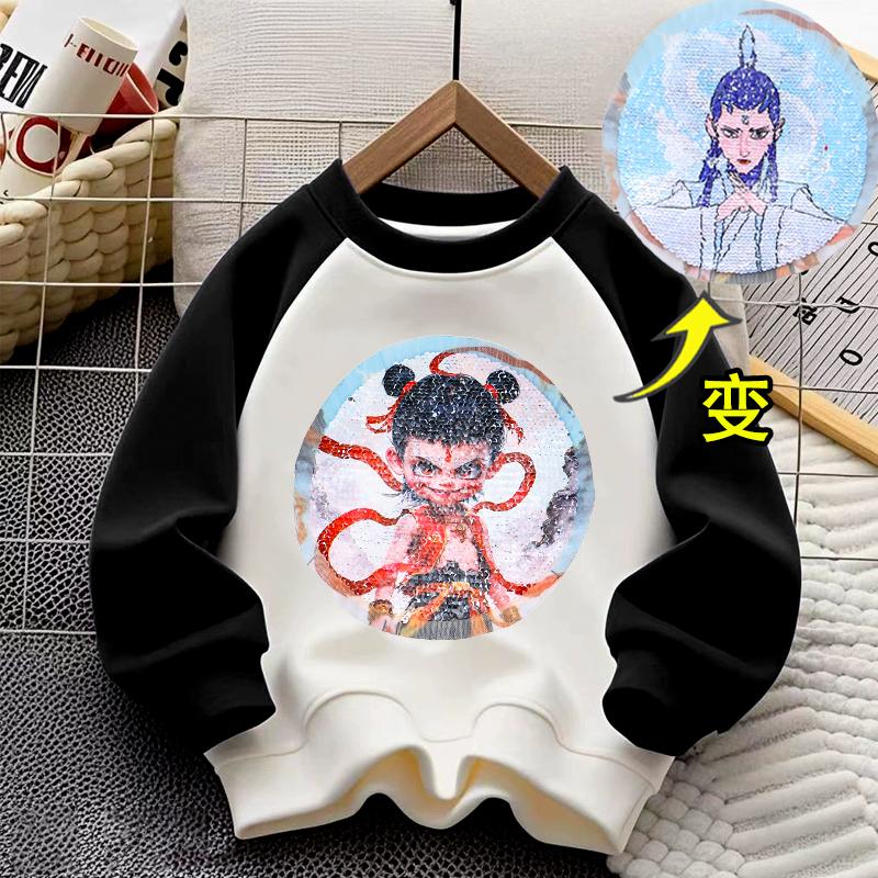 儿童纯棉变色亮片哪吒卫衣25秋冬加厚男童女童小男孩敖丙长袖上衣